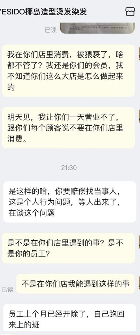 椰岛店员洗头发时猥亵女顾客