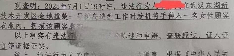 7月1日,武汉的王丽(化名)称,她在连锁品牌椰岛美发店“遭遇一件恶心事”:她在洗发时睡着了,突然被人触摸胸部的动作惊醒,对方却辩称是做肩颈按摩。
